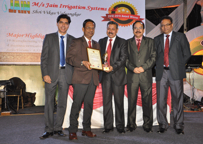 Jain Irrigation Systems Limited (JISL) was recently conferred with the ‘Best Customer Award’, for achieving the highest quantity of Polymer for FY 2013–14, presented by GAIL India (Oil, Gas & Petrochemical giant having turnover in excess of Rs.50,000 Crores), and the Youngest Maha Navratana Company.