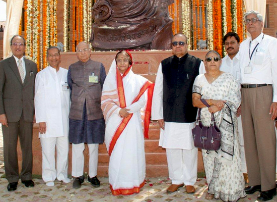 Gandhiji was not merely a personality but a powerful ideological force which derived its inherent strength from Truth, Non–violence and other profound virtues – the Hon’ble President Smt. Pratibha Patil opined today after dedicating Gandhi Teerth to Humanity. She exhorted the youth to tread Ganghiji’s path and take India to greater heights of progress and modernity. The President, who hails from Jalgaon, was particularly happy that such a Gandhian research and study centre of international status had taken roots in her birth place, and expressed confidence that the initiative will put Jalgaon on the world map. Hon’ble Governor of Maharashtra, Dr. K. Shankarnarayanan, prominent educationist Shri Devisingh Shekhawat, Chairman of Gandhi Teerth Justice Chandrashekhar Dharmadhikari, its Founder and prominent industrialist Dr. Bhavarlal Jain, and its Trustee Shri D.R. Mehta were present on this occasion.