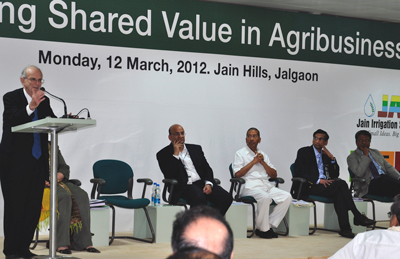 Jalgaon, March 12, 2012 (Our Reporter): Though the ultimate object of any business is to earn profit, the situation is not such that capitalism born out of it will remain the same. Our customer is farmer and it is necessary for us to understand his needs so that industry active in agricultural sector (Food Processing Industry) can prosper in the near future, said the Founder Chairman of Jain Irrigation Systems Ltd. Bhavarlalji Jain. He was speaking at the first session of the one–day international conference jointly organized by Jain Irrigation and Enterprise Solutions to Poverty (USA) on the subject of “ farmers progress through agriculture profession.” Harvard Business school′s Dean Mr. Nitin Noharia, world famous Management Consultant Dr. Ray Goldberg, Agricultural Consultant to the Planning Commission V. V. Sadamate and Ms. Nancy Berry were present on this occasion. All major Chiefs and Heads of the most of companies working in the agricultural sector this spectacular workshop held in India for the first time. This one–day discussion of the Heads of major agricultural companies was fruitful as they approved the action plan and also declared their intention to work towards achieving that plan.